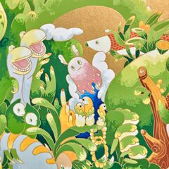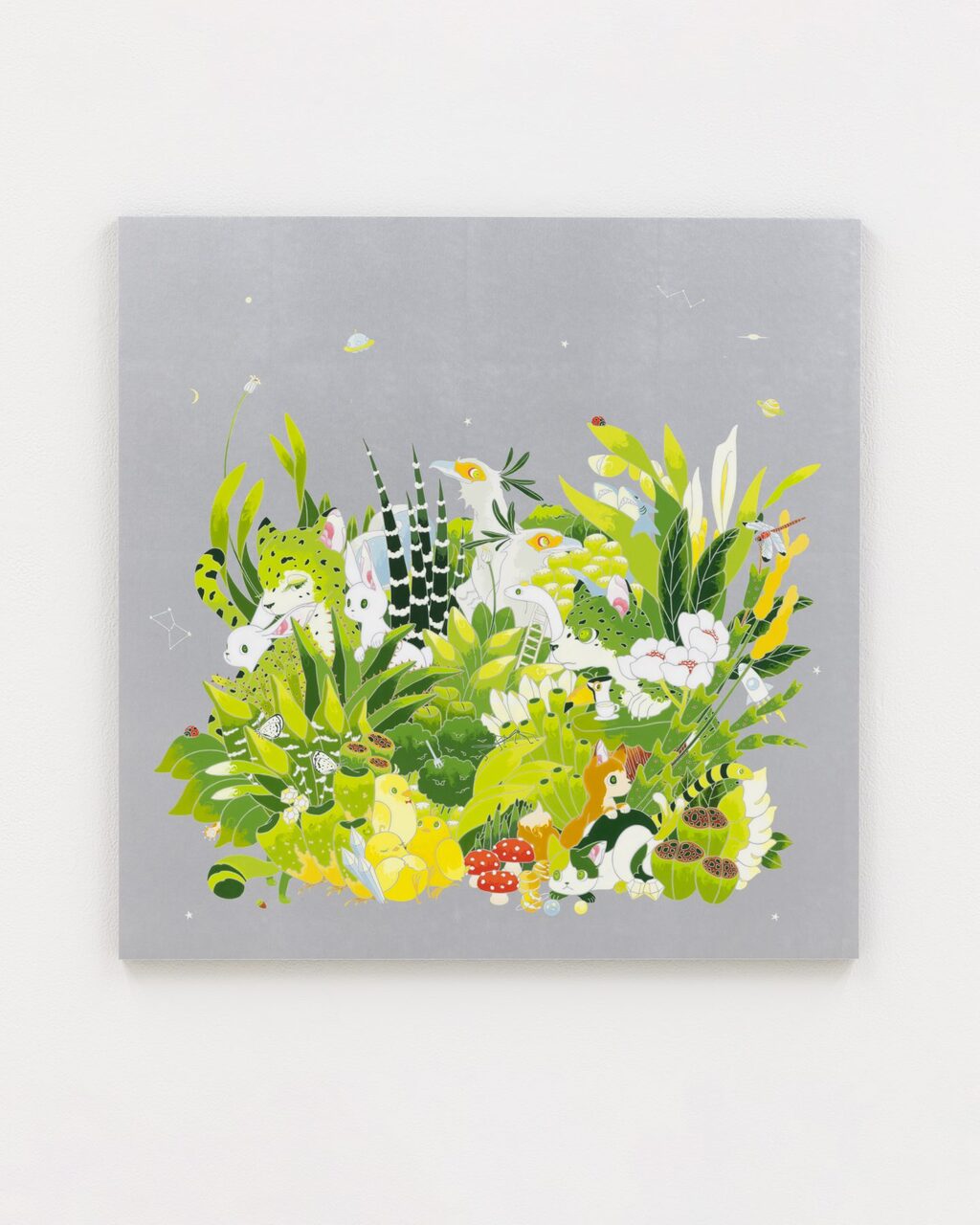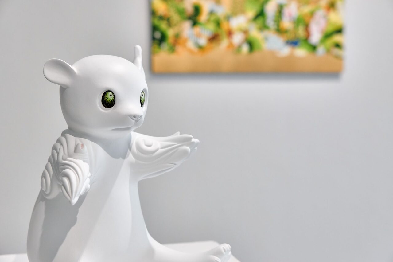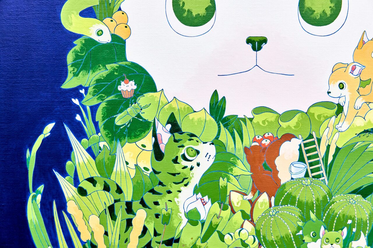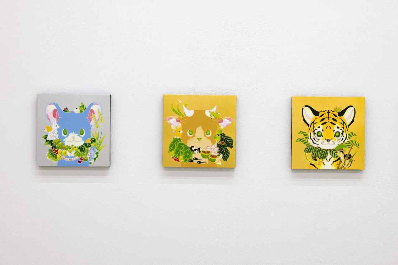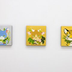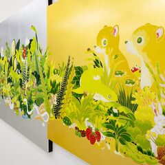 大学卒業後と同時に作家として活動を始めた住吉は、愛らしい顔の動物たちが暮らす森の情景を、メディウムや表現方法は変われども一貫した世界観で、絵画から立体、インスタレーション等多岐に渡り発表してきた。柔らかで可愛らしい表情の動物を制作する裏では、多くの資料や図鑑をリサーチしながら制作する作家のストイックな面が見られる。