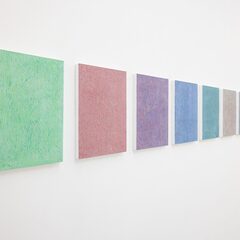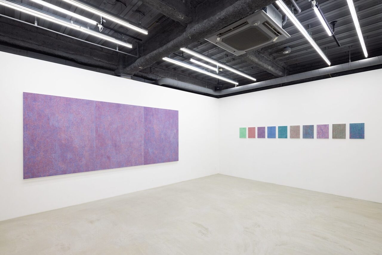 鈴木が作り出す画面は作家の息づかいすらも感じ取れる程の鮮明な行為の痕跡として鑑賞者に提示され、同時に「彫る」という反復行為によって顕在化した絵具の断層は、作家が作品と対峙した膨大な時間を物語っている。